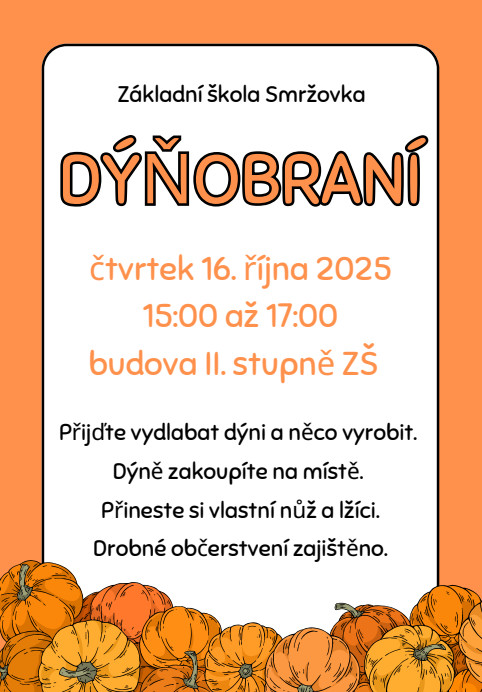 Ve čtvrtek 9. 10. 2025 proběhne akce s názvem Den napříč. Děti se budou pohybovat celý den venku v přírodě v okolí Parkhotelu, proto jim dejte vhodný oděv, obuv (gumáky jsou nevhodné) a batůžek se svačinou a dostatkem pití, tužku a notýsek. Alergici a astmatici by měli mít při sobě své vlastní spreje a léky.