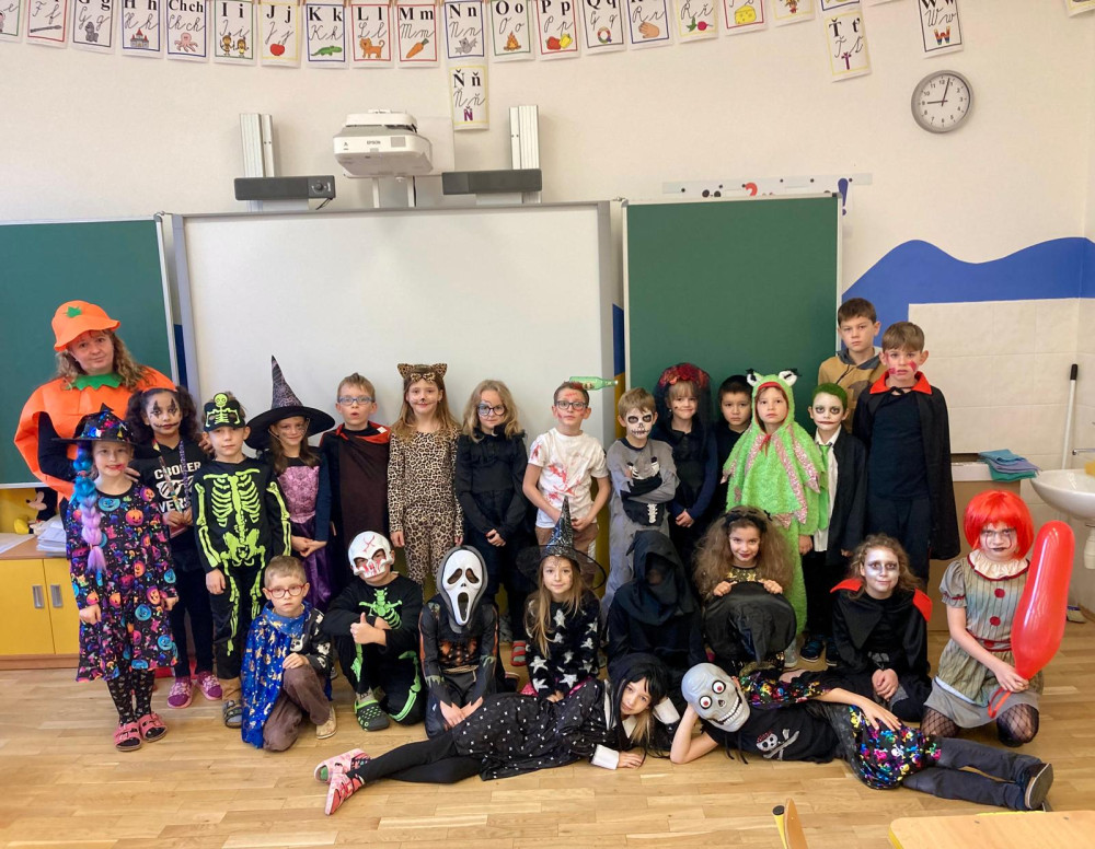 Dnešní “strašidelný” den se povedl. Děti měly úžasné masky, přinesly spoustu sladkých i slaných dobrot. Ve skupinkách plnily halloweenské úkoly a vyrobily si lucerničku. V jídelně nás čekala speciální výzdoba i dezert. Více fotografií najdete v odkazu níže.