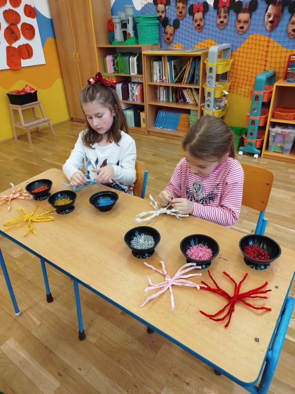 Dnes jsme část dne strávili venku, kde jsme hráli různé “myší” hry a zkoušeli i jiné aktivity. Déšť nás zahnal do třídy, kde jsme vymýšleli a tvořili myšácká pravidla.